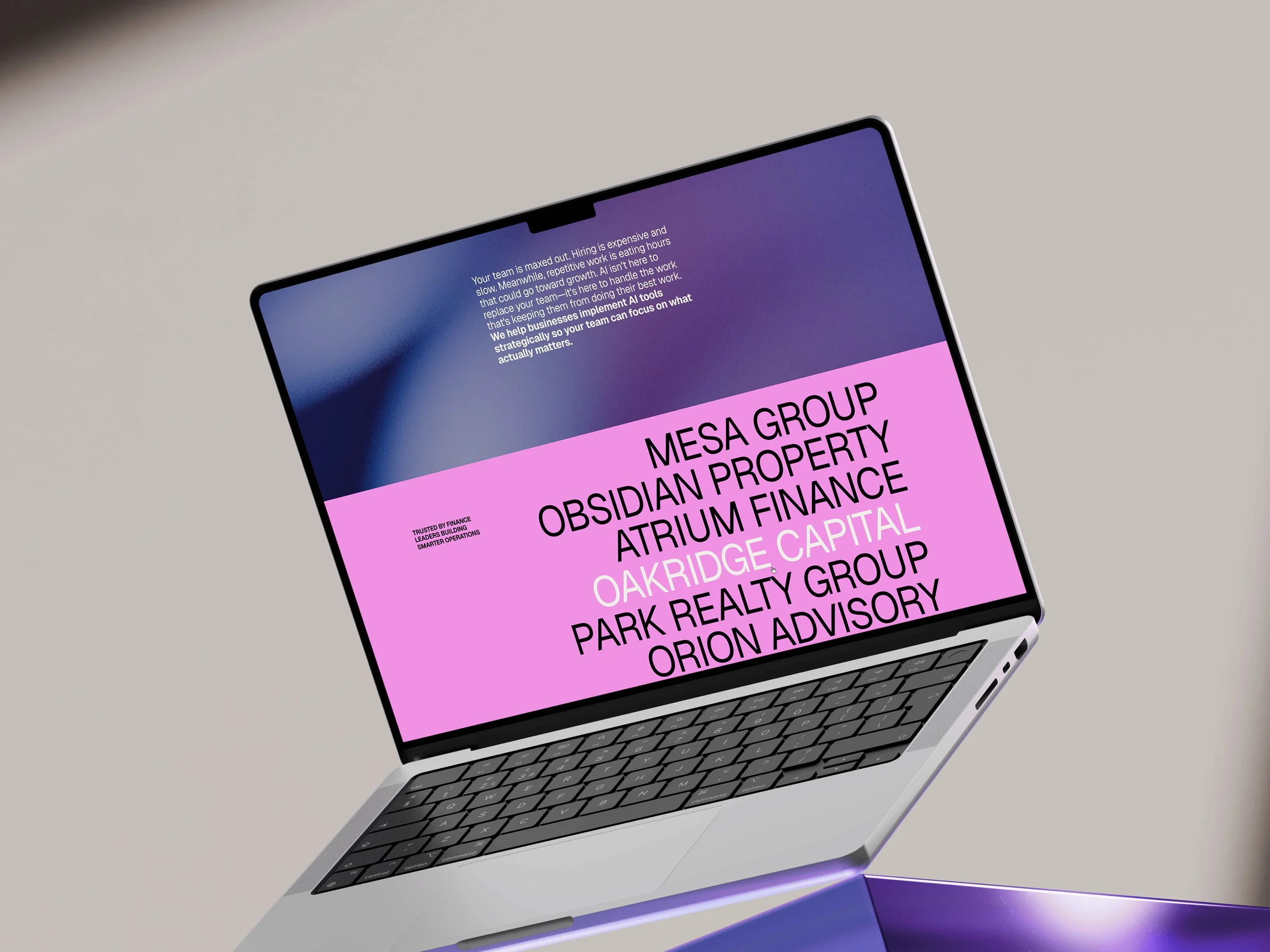 We created a bold experience balancing tech credibility with human warmth. Vibrant accent colours and clean typography build confidence without hype. Clear case studies and direct messaging address skepticism head-on—proving expertise while honouring the "Human Work Only" philosophy.